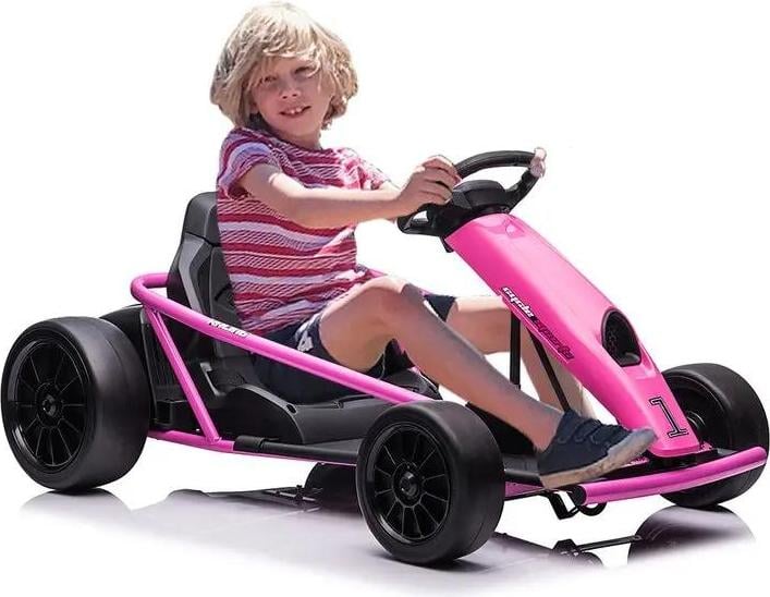 Karting électrique pour enfants - Kart électrique drift - 24 V - Moteur 2 x 300 W - 8 km/h - Pédalier - 4 roues - à partir de 14 ans - Rose