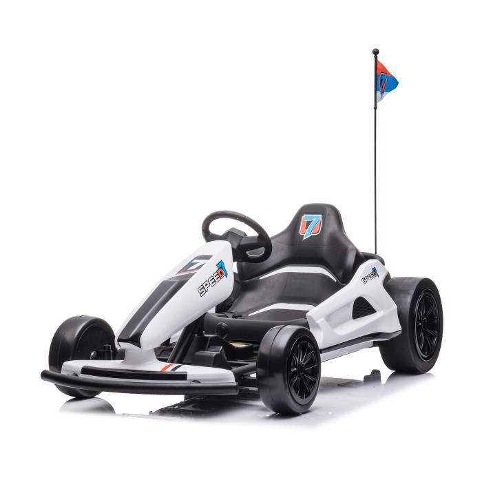 Kart Electrique avec Vitesse sans Pas, 12V Drift Kart électrique pour Enfants avec Siège Réglable, Karting Electrique avec Musique, Bluetooth, Lumière