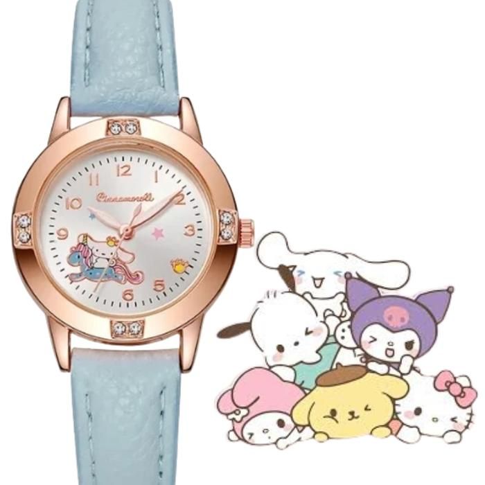Montre enfant style Cinnamoroll kawaii bleu cadran analogique bracelet souple