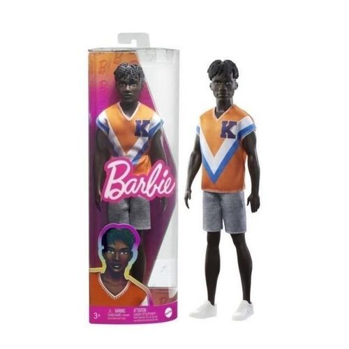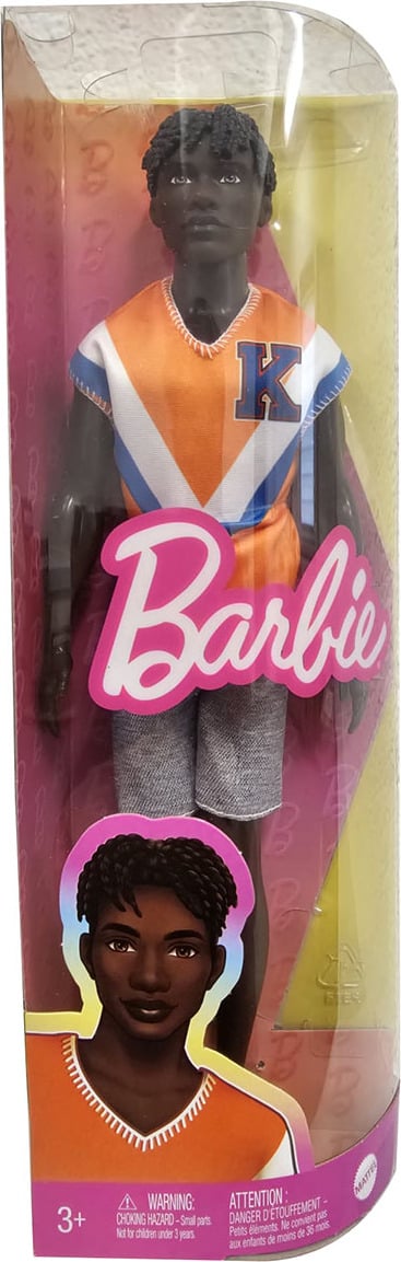 Mattel HPF79 Barbie Fashionitas Poupée Ken tenue de sport short chemise baskets blanches cheveux tressés noir pour enfants