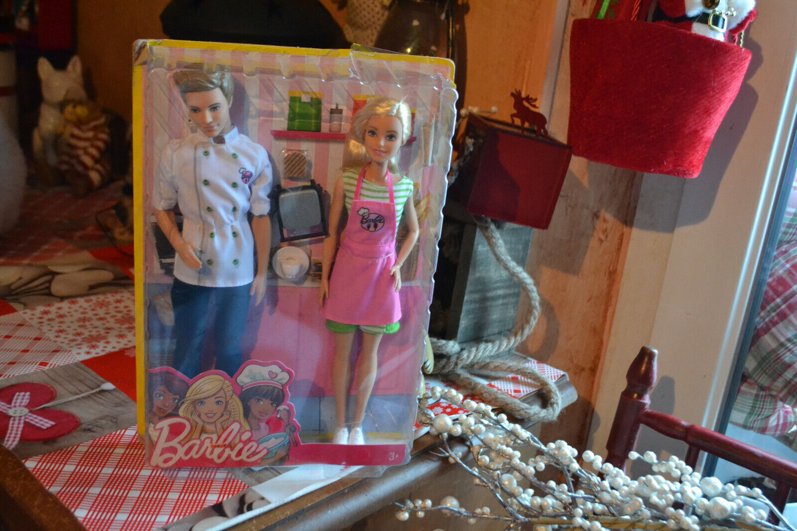 coffret neuf barbie et ken en tenue de cuisinier retrouver au grenier tres rare