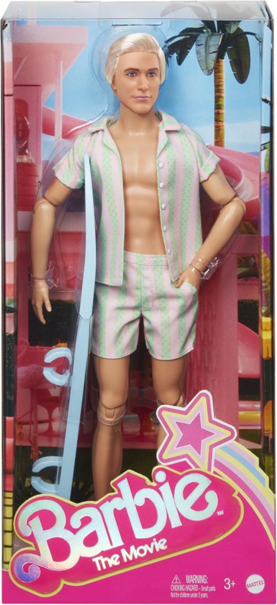 Poupée Barbie The Movie Ken portant un ensemble de plage à rayures pastel