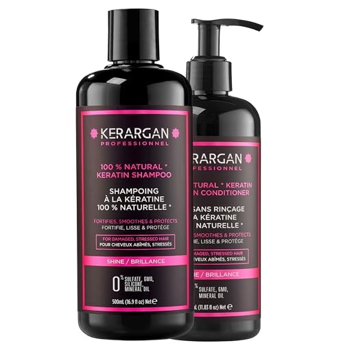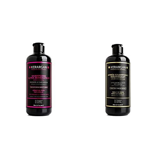 Kerargan - Shampoing à la kératine et à l’huile d’argan pour fortifier et protéger vos cheveux - 500 ml & Après shampoing à l’huile de ricin, d’argan et camomille - Sans Sulfate, Sans Paraben - 500 ml