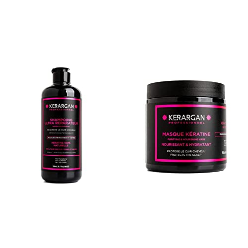 Kerargan - Duo Ultra Réparateur Shampoing & Masque à la Kératine pour Cheveux Abîmés et Stressés - Nourrit, Lisse & Protège - Sans Sulfate, OGM, Silicone - 2x500 ml