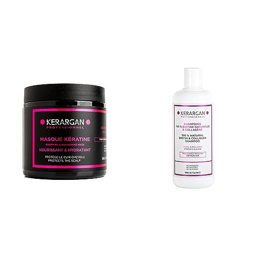 Kerargan - Masque Capillaire à la Kératine pour Régénérer et Fortifier le Cheveu & - Shampoing à la Biotine et au Collagène Pour Donner Force et Brillance - Cheveu Abîmé et Fin - Sans Sulfate