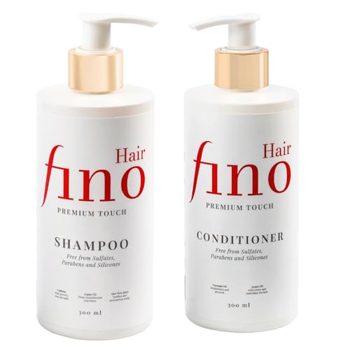 fino Hair Set Premium – Shampooing + après-shampoing naturels à l’aloe vera, huile d’argan, biotine & kératine – Cheveux secs, abîmés, brillants – Sans silicone ni parabène