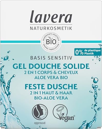 lavera Gel Douche Solide 2 en 1 basis sensitiv - sans silicone - aloe vera bio & kératine bio - trois fois plus rentable que du shampoing liquide - cosmétiques naturels - vegan - bio (1 x 50g)
