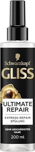 Gliss Après-shampoing réparateur Express Ultimate Repair (200 ml), après-shampoing à la kératine répare les cheveux extrêmement abîmés, après-shampoing avec protection thermique jusqu'à 230 °C