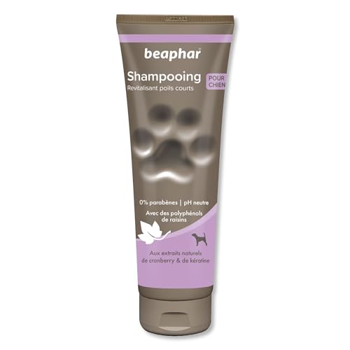 BEAPHAR – Shampoing Premium revitalisant pour chien aux poils courts – Aux extraits naturels de cranberry & de kératine – Fortifie, tonifie et protège le pelage – pH neutre et sans parabens – 250 ml
