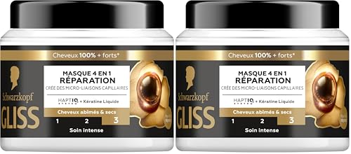 GLISS - Schwarzkopf - Masque 4en1 - Réparation - Kératine Liquide - Haptiq System - Crée des Micro-Liaisons Capillaires - Cheveux Abîmés et Secs - Soin Intense - Nourrit & Repare - 400ml (Lot de 2)
