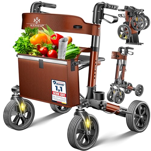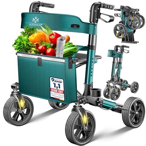 KESSER Déambulateur léger et pliant 4 roues , équipement complet pliable 3 positions pour coffre de voiture et voyageur Hauteur réglable,