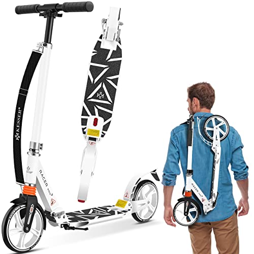 KESSER® trougetinette de Ville Trougetinette Roues 205 mm en PU Big Wheel - trougetinette Pro-S avec Double Suspension, trougetinette de Ville Trougetinette Pliable et réglable en Hauteur, Blanc