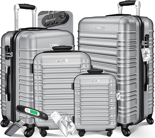 KESSER® Set de 4 valises à Coque Dure, Trolley Valise INCL. Balance + étiquette de Bagage à roulettes, Serrure, 4 roulettes ABS, S-M-L-XL