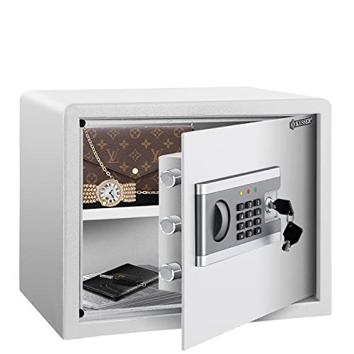 Kesser Coffre-fort Électrique | Boîtier à piles inclus | Coffre-fort électronique | Triple verrouillage à double boulon | Coffre-fort mural ou à poser au sol | Coffre-fort à poser, L argent