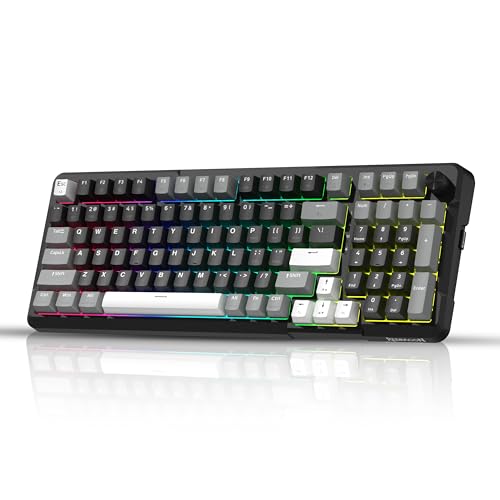 Redragon K742 Clavier Mécanique sans Fil, Wireless Gamer Keyboard BT/2.4G/USB-C avec Rétroéclairage RGB, Gasket Structure, Hot-Swap Switch Creamy Linéaire Pré-lubrifié, pour Win/Mac/PC - Noir