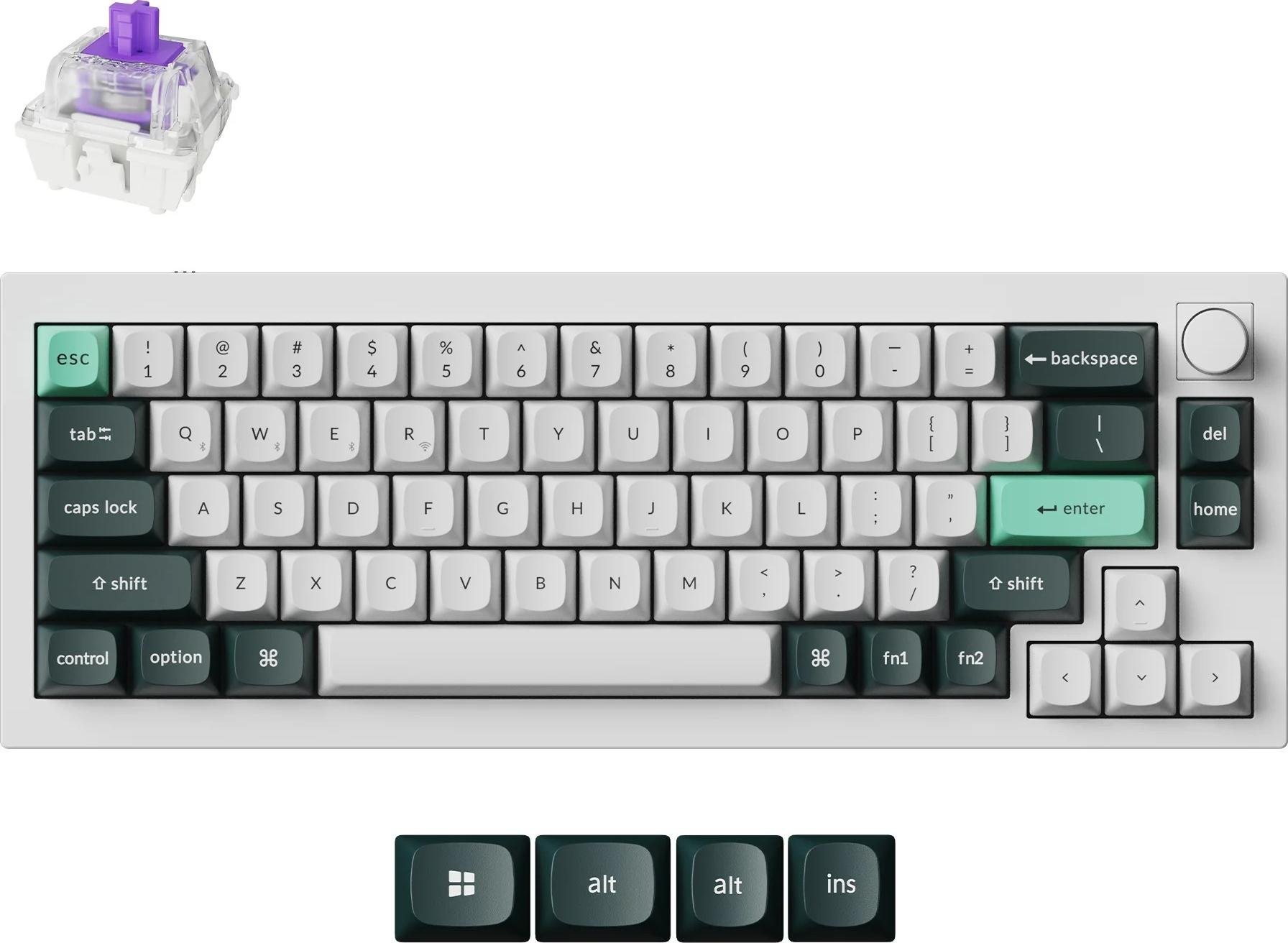Télécommande de jeu magnétique Keychron Q2 HE QMK avec clavier QWERTY, 2.4G/Bluetooth/USB-C RGB Hot-Swap, Shell White, Gateron Double-Rail Nebula Switch