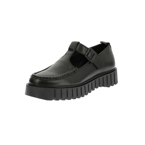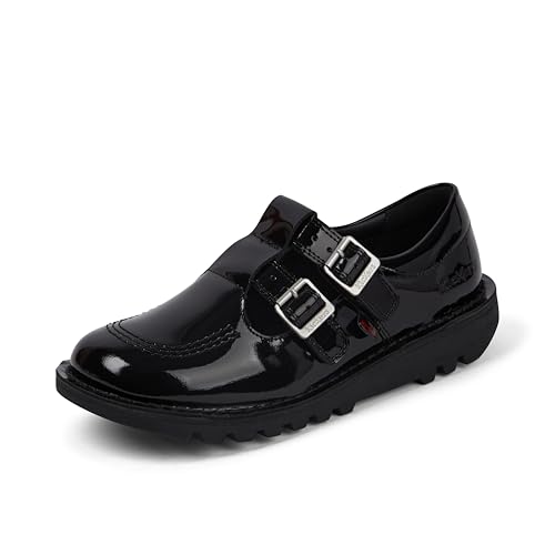 Kickers Chaussures en Cuir pour Femme T Bar Double, Noir, 37 EU
