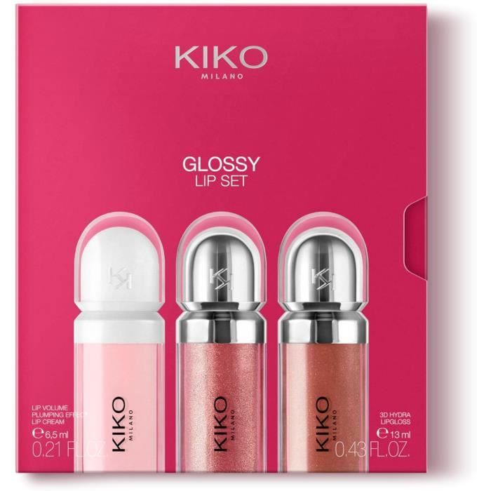 KIKO Milano Glossy Lip SetKit Maquillage 2 Gloss Hydratants Et 1 Crème Perfectrice Pour Les Lèvres