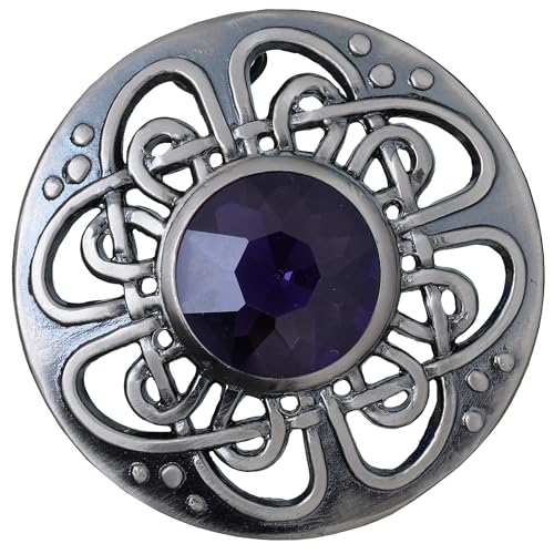 Broche à carreaux pour kilt pour homme – Broche Culloden – Élégante finition laiton étain antique – Épingle à kilt celtique – Différentes couleurs de pierres précieuses, 7,6 cm de diamètre, 7.6