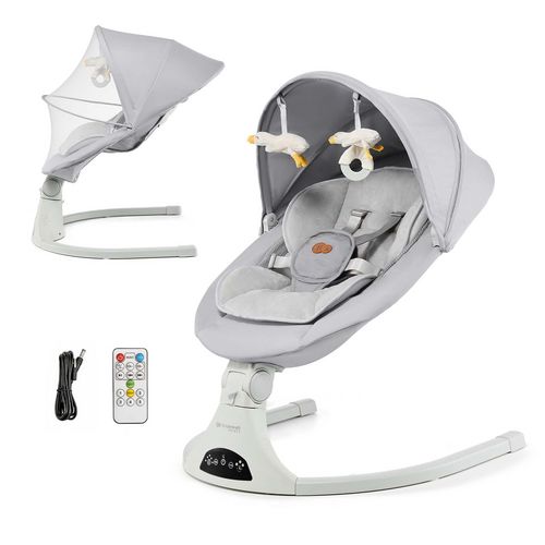 Kinderkraft SWINGEE Transat bébé, Balancelle de La Naissance, dossier réglable, 8 mélodies apaisantes intégrées, Berceau bébé, Léger et pliable, Gris