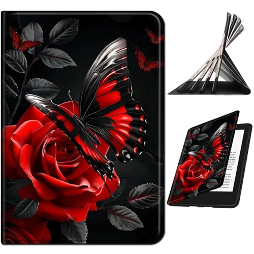 RWUTYTIUL Étui pour liseuse Kindle Paperwhite 4 6" (10e génération, version 2018) - Antichoc, protection multi-angles - Pour homme et femme - Avec mise en veille/réveil automatique, fleur rouge