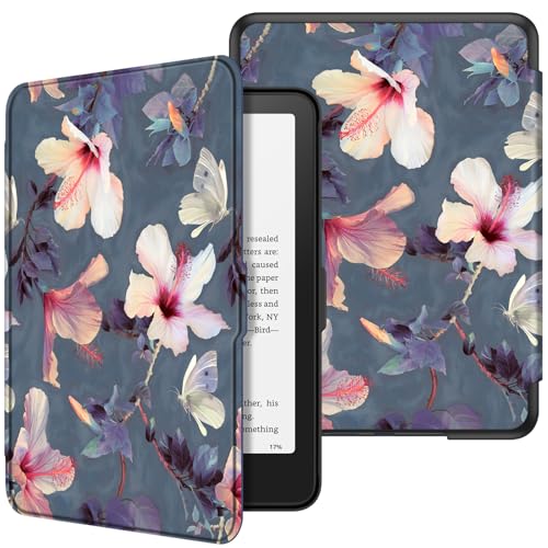 FINTIE Étui pour 7" Kindle Paperwhite (12e Génération, 2024) et Kindle Colorsoft (1re Génération, 2025/2024), Coque Fine et Léger, Housse Réveil/Veille Automatique, Fleur Hibiscus