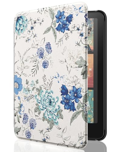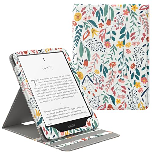 MoKo Étui pour 7"/6.8" Kindle Paperwhite (12th/11th Gen.,2024/2021)&Kindle Colorsoft Signature Edition(1st Gen.,2024), Coque de Retournement Vertical avec Réveil/Sommeil Automatique, Fleur