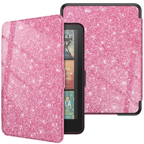 FINTIE Étui pour 7" Kindle Paperwhite (12e Génération, 2024) et Kindle Colorsoft (1re Génération, 2025/2024), Coque Fine et Léger, Housse Réveil/Veille Automatique, Magenta Pailleté