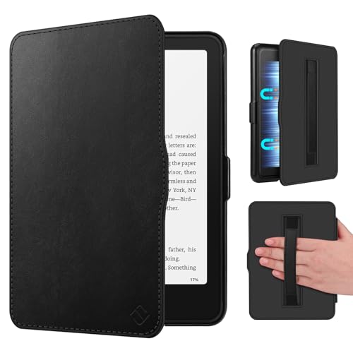 FINTIE Étui pour 7" Kindle Paperwhite (12e Génération, 2024) et Kindle Colorsoft (1re Génération, 2025/2024), Étui Fin Léger Housse avec Dragonne, Noir