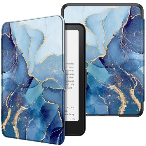 FINTIE Étui pour 7" Kindle Paperwhite (12e Génération, 2024) et Kindle Colorsoft (1re Génération, 2025/2024), Coque Fine et Léger, Housse Réveil/Veille Automatique, Marbre Océan