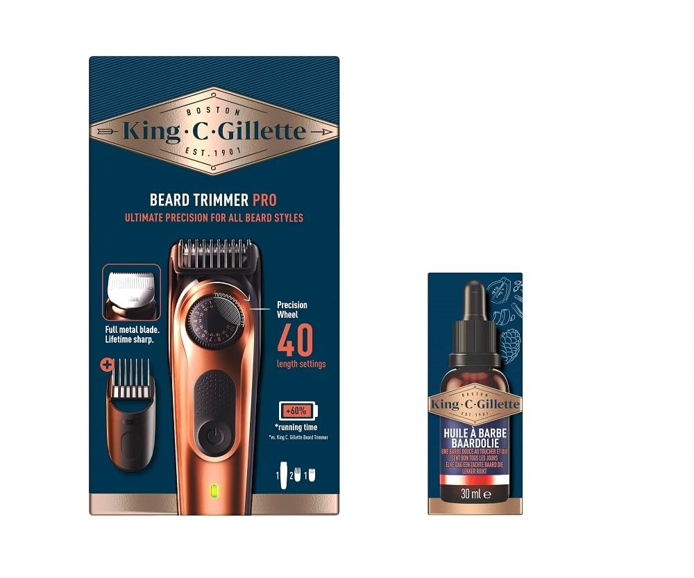 King C. Gillette Tondeuse à Barbe Sans Fil Rechargeable Gilette 3 Sabots Homme