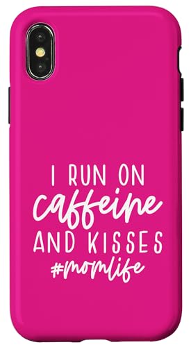 Inscription Humoristique « I Run on Caffeine and Kisses Mom Life » Coque pour iPhone X/XS