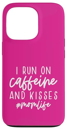 Inscription Humoristique « I Run on Caffeine and Kisses Mom Life » Coque pour iPhone 13 Pro