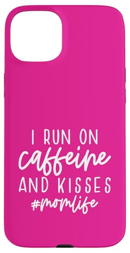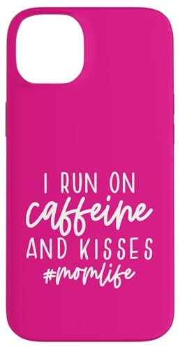 Inscription Humoristique « I Run on Caffeine and Kisses Mom Life » Coque pour iPhone 15 Plus