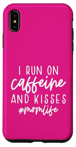 Inscription Humoristique « I Run on Caffeine and Kisses Mom Life » Coque pour iPhone XS Max