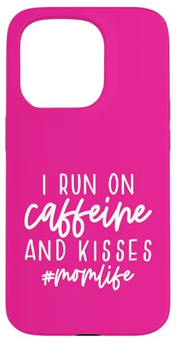 Inscription Humoristique « I Run on Caffeine and Kisses Mom Life » Coque pour iPhone 15 Pro