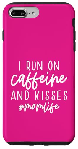 Inscription Humoristique « I Run on Caffeine and Kisses Mom Life » Coque pour iPhone 7 Plus/8 Plus