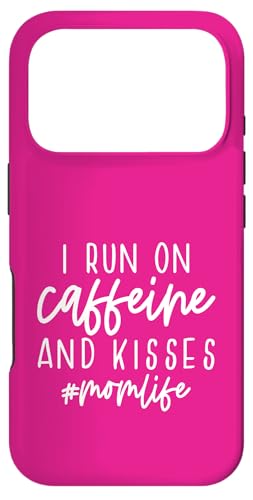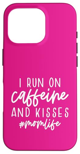 Inscription Humoristique « I Run on Caffeine and Kisses Mom Life » Coque pour iPhone 16 Pro