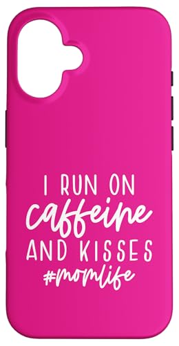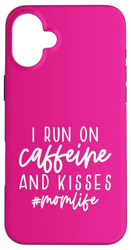 Inscription Humoristique « I Run on Caffeine and Kisses Mom Life » Coque pour iPhone 16 Plus