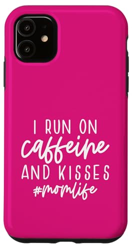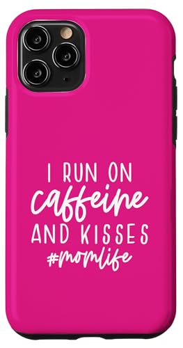Inscription Humoristique « I Run on Caffeine and Kisses Mom Life » Coque pour iPhone 11