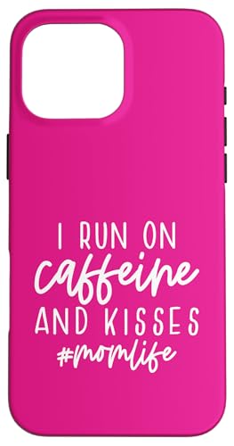 Inscription Humoristique « I Run on Caffeine and Kisses Mom Life » Coque pour iPhone 16 Pro Max