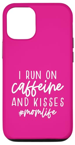 Inscription Humoristique « I Run on Caffeine and Kisses Mom Life » Coque pour iPhone 12/12 Pro