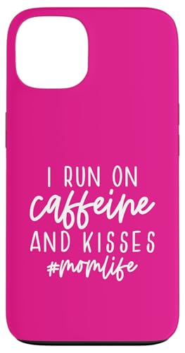 Inscription Humoristique « I Run on Caffeine and Kisses Mom Life » Coque pour iPhone 13