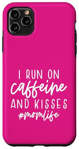Inscription Humoristique « I Run on Caffeine and Kisses Mom Life » Coque pour iPhone 11 Pro Max