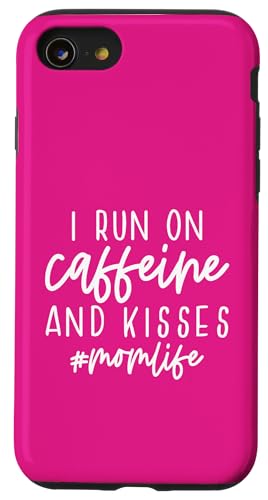 Inscription Humoristique « I Run on Caffeine and Kisses Mom Life » Coque pour iPhone SE (2020) / 7/8