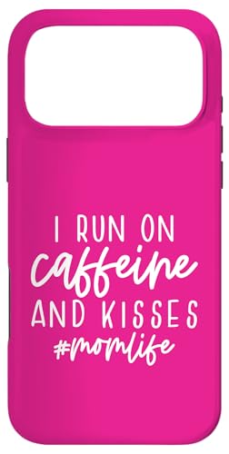 Inscription Humoristique « I Run on Caffeine and Kisses Mom Life » Coque pour iPhone 17 Pro Max