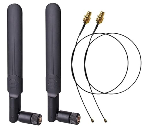 Kit Antenne WiFi Double Bande 2x8dBi 2.4/5/5.8GHz RP-SMA + 2 Câbles Pigtail U.FL/IPEX vers RP-SMA Femelle 21CM pour Mini Carte PCIe, Routeurs, Répéteurs, PC, Drones FPV UAV, PS4 - Amélioration du Sign