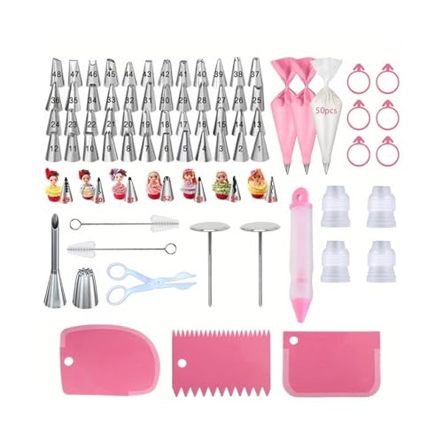 LIZHAYG Poche A Douille Patisserie Kit Complet de 128 Douilles à pâtisserie for la décoration de gâteaux : 57 Embouts et Outils for pâtissiers Amateurs et Professionnels.(128PCS Pink)