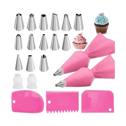 DmDoyy Poche À Douille 34 Pièces, Poche A Douille Patisserie Reutilisable avec 24 Douilles en INOX, Kit Professionnelle, DIY Patisserie Accessoire pour Décoration De Cupcake Et Muffins Gâteaux