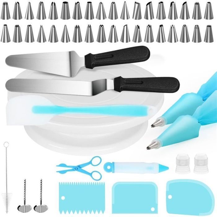 KOUHA Kit Plateau Tournant Patisserie Outils de Plateau Tournant Gateau avec Grattoirs à Gâteaux, Spatules, Poches à Douille et Embouts de Tuyauterie Cake Decorating Tools (72 Pièces)